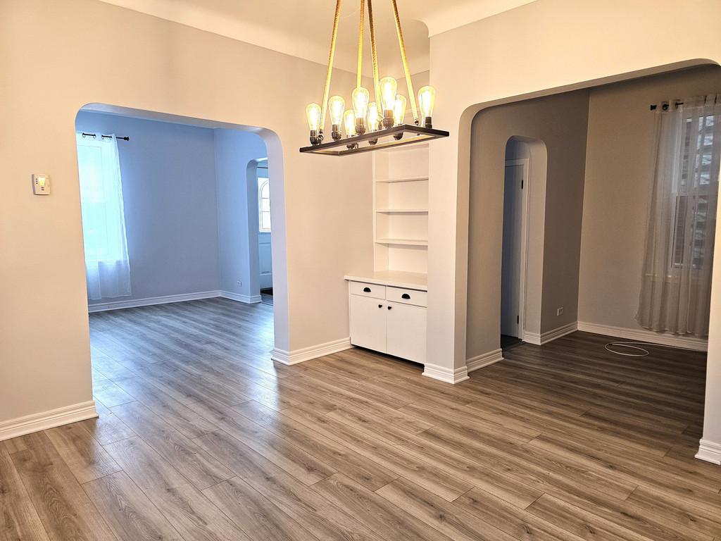 Large windows throughout allow for plenty of natural light, and the dining room has a beautiful built-in cabinet. There's even a small alcove perfect for a home office.