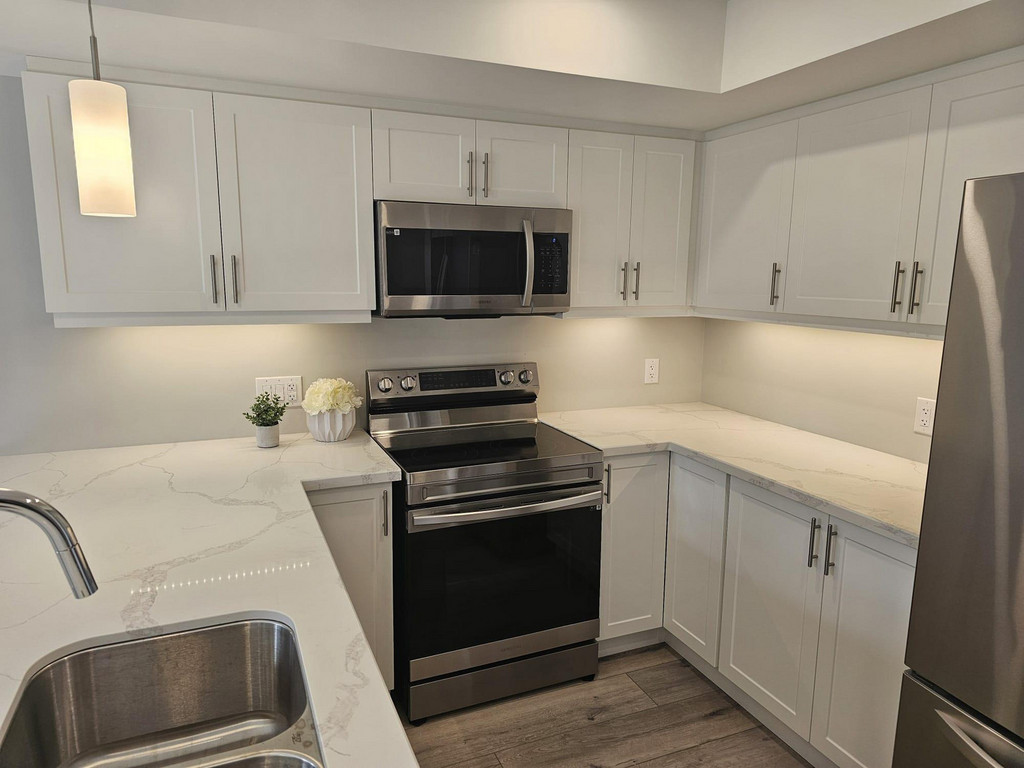 - MODERN KITCHEN with all stainless steel appliances, including dishwasher